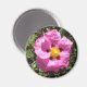 Mexican rock rose. Bright pink petals with burgundy spots near central yellow stamens and stigma.