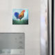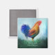 Aimant avec une peinture originale d'un coq coloré dans un champ d'herbe avec votre (drôle) texte(s).