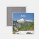Le sommet enneigé du mont Baker s'élève dans le ciel bleu clair. C'est une journée ensoleillée dans le Pacifique Nord-Ouest. En contrebas de la montagne, des arbres à feuillage persistant s'élèvent devant un petit lac alpin de belle couleur turquoise. Le mont Baker, également connu sous le nom de Koma Kulshan ou Kulshan, est un volcan en vue dans les Cascades du Nord de l'État de Washington. Apportez cette vue pittoresque sur les montagnes Cascade à votre maison avec cet aimant. Vous pouvez customiser le texte pour donner à l'aimant votre propre message. Cette photo de paysage est également disponible sur magnets ronds en trois tailles. Profitez de choisir votre façon préférée de profiter de ce paysage magnifique.