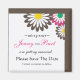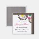 Ces Magnet Réservez la date magnifiques sont le moyen parfait de demander à vos amis et à votre famille de sauver la date pour votre grand jour! Le design est composé d'un chocolat et de fleurs roses. Ils peuvent également être customisés pour s'adapter à n'importe quel de vos événements importants à venir. Contactez-moi à 'sika_273@yahoo.com' si vous voulez des magnets dans une couleur différente.Merci pour la navigation!