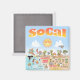 Une scène lumineuse et colorée offre une vue spectaculaire de la Californie du Sud - personnages farfelus sur la plage et le désert de SoCal présentant les parcs de Los Angeles, San Diego, Orange County, Père Noël Barbara, Riverside, Palm Springs, Palm Desert, El Centro et Anza Borrego et Joshua Tree ainsi que les villes frontalières de Tijuana, Tecate et Mexicali. Cette scène pleine de charme a tout - un surfeur pend dix tandis qu'un orque saute de l'eau, des animaux de zoo accueillent les touristes, un couple de plage musclé à flex pour impressionner comme un T-Rex rugit un défi et un réservoir se met en position et bien plus encore...