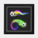 This square magnet is shown with a art print of a flaming soccer ball.