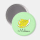 Magnet with fun summer design with 3 lemon slices in yellow and white colours. The design is customizable and you can change the colour of the background, or personalize the text.