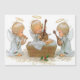 Trois anges jouant des instruments sur Jésus dans la crèche. Ces trois bébés anges jouent des instruments de musique autour du bébé Jésus dans la crèche.