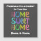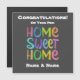 Félicitations à un couple ou à un individu pour leur nouvelle maison avec le texte coloré "Home Sweet Home". D'autres textes peuvent être facilement changés.