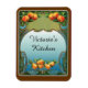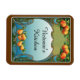 Art étiquette Art déco avec lettres de script, avec art vintage de branches de pommes et poires sur un arrière - plan vert et bleu.