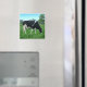 Ces magnets présentent une photo de vache noire et blanche mangeant de l'herbe dans un pâturage vert. Cette image est également disponible sur les cartes et timbres-poste correspondants. Photo ©Archie Patenaude