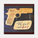 Ce pistolet à bois a l'humour de dire 'on n'appelle pas le 911', avec un arrière - plan à grains de bois tout affiché dans les tons de terre brune qui met en évidence la citation. Un patriotisme mignon pour les magnets de cuisine et d'entrée.