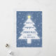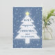 Blue and white Christmas tree with yellow star and snow falling. Easily change any of the text.