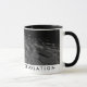 Buzz Aldrin's iconic description of the lunar surface emblazoned on a stylish black and white mug with original lunar landscape.