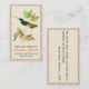 Personalized "From The Library Of" card features a vintage illustration of a green and gold hummingbird perched on the branch of a tropical plant with pink flowers, on a light yellow gold parchment background with a coral pink marble texture frame. Includes space for your favourite quote or other information on the back. Tuck one of these cards between the pages or in the case of your loaned books and other media to make sure they find their way back to you. Doubles as a bookmark for printed materials.