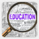 An education design with a magnifying glass over the word education. This design looks really effective on these Stickers