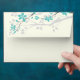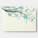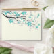 Magnolia branch turquoise wedding custom envelope, featuring a beautiful magnolia branch with turquoise flowers and buds. Ivory, turquoise, black, grey.