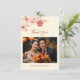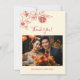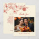 This Chinese wedding thank you card features a red floral line art branch, a custom photo and a red double happiness symbol on a cream background. Matching stationery available.