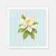 Magnolia Flower Custom Wedding Blue Stripe Napkin