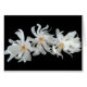 closeup of three magnolia flowers or magnolia alba isolated against black background