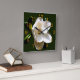 Watching time pass will be a pleasure with this clock featuring a large Southern Magnolia bloom placed against a dark green background with gold numerals. The waxy petals of the flower are a soft, creamy white and the leaves are a rich, dark green.