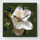 Magnolia with Gold Numerals Square Wall Clock
