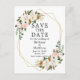 Magnolias Pink Roses Gold Geo Frame Save The Date Postcard