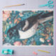 The magpie’s striking black and white plumage stands out against the intricate floral backdrop, reflecting the seamless blend of wildlife and artistry. Decoupage papers created by RHDesigns for furniture, chairs, canvas, poster art and home decor.