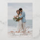Une photo moderne et élégante merci carte à plat conçu pour accommoder votre photo mariage préférée verticale ou portrait avec le Hawaiien merci de saluer "Mahalo" comme un script de feuille d'or rose superposition texte. Personnalisez avec vos noms et/ou la date du mariage en dessous, et ajoutez un message pré-imprimé au verso. Pour laisser vide votre message manuscrit, supprimez simplement l'exemple de libellé.