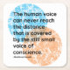 The human voice can never reach the distance that is covered by the still small voice of conscience. - Mahatma Gandhi Conscience Quotes