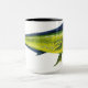A bright and colorful Mahi Mahi fish mug. A menacing looking fish that will make a dramatic statement in the kitchen! Taken from an original acrylic painting by Devon based artist E.Wrigley.