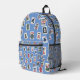 Mahjongg tiles symbols design on blue printed backpack