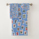 MahJongg tiles (symbols) on blue Bath Towel Set
