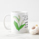 Cette tasse à café présente de belles oeuvres d'art de la fleur de naissance de May, le lis de la vallée, et son symbolisme. Lys de la fleur de vallée signifiant : douceur, pureté, humilité. Parfait pour les personnes nées en mai. Une partie de notre collection de Mug Fleur Mois de naissance avec sens Fleur.