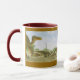 The dinosaur nesting ground is for Maiasaura, of Cretaceous Montana. A nice coffee mug with earthen tones.