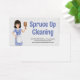 Maid Holding Duster | Soap Bubbles business card is for those in the house cleaning industry.
