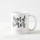 Maid of Honour coffee mug with black and pink calligraphy lettering. Personalize the name to customize. Modern lettering designed by Joy by Jess.