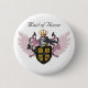 This is a "Jolean" original, Maid of Honour Crest- Button. Created with the help of Dexteriti Digital Media. This beautiful crest (available on other bridal products as well) let's everyone know who your maid of honour is with a flash of brilliance and class. The crest features a ring, a cake, a gift box, and a bouquet, as well as wings and a crown on a beautiful coat of arms style crest. Everyone is sure to want to know where you found it and your Maid of Honour will truly be honoured.