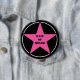 There's a new sheriff in town, and she's the maid of honour. This fun button is perfect for disco cowgirl themed bachelorette parties. It features a pink star graphic against a black background with white accent stripe. The MAID OF HONOR text can be customized with your own message.
