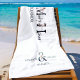 Maid of Honour beach towel to personalize for your number one girl to take on your bachelorette weekend or a thoughtful welcome gift for your destination wedding. Maid of Honour is lettered with neutral boho floral letters and handwritten script. You can also add the name of the bride and groom and their wedding date, which frames a co-ordinating floral ampersand. Lovely wedding party keepsake gift and perfect for a fall wedding, floral wedding, boho garden wedding or any theme with a neutral earthy wedding colour palette.