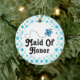 Maid Of Honour wedding party custom snowflake holiday ornament, a pretty Christmas keepsake gift for her to remember that special wedding occasion.
