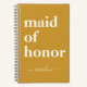 Keep wedding planning organized in style with this personalized maid of honour notebook, featuring bold typography on a warm mustard background with a custom name detail; perfect for jotting down tasks, speeches, and special moments, this spiral notebook makes a thoughtful and practical gift for the maid of honour, ensuring she stays on top of all the wedding details with elegance and ease.