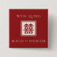 'MAID OF HONOR' Simple Classic Square Cream Double Happiness On Red Background, Asian / Chinese / Oriental Themed Modern Minimalist Wedding Party / Wedding Rehearsal / Bridal Party / Team Bride Entourage / Bachelorette Party / Hen's Night / Name Tag / Pin Button.