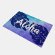 Periwinkle, Purple, Turq and Navy Colorway. The message of Aloha welcomes your visitors to your own tropical paradise. Hawaiian monstera leaves are often referred to as “elephant” leaves as their shape is reminiscent of an elephant’s ear. These gorgeous plants grow all over the islands and have become an important symbol used in Aloha shirts. Our design combines simple graphic elements with vibrant tie-died blended colours and distressing. This design comes in several colorways.