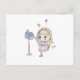 A kawaii girl sending a Valentine's Day card. Her sweet face captures the hopeful anticipation of sending a Valentine out and longing for one in return.
