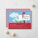 Cute and modern card ideal to announce your move to family and friends. Features a traditional mailbox with a sky blue background, clouds and grass. The words “We Have Moved” are written on the mailbox. A stripes border makes this design eye-catching. Add your own wording.
