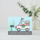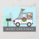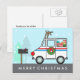 A mail truck that's ready to spread holiday cheer throughout the neighbourhood. Gifts are loaded and ready to be delivered. A wreath hangs on the door. Silly reindeer antlers and red nose are fastened to the jeep. Personalize this card for the mailman or mail lady, it's a fun unique way to say thank you.