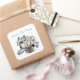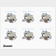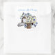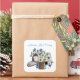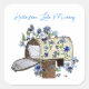 Stickers with an illustrated mailbox and custom text. Use as an envelope seal in size 3" or 1.5". Buy in bulk, or by the sheet. The mailbox is my own hand-drawn artwork. The mailbox door is open and letters can be seen inside. A pretty, blue-flowering vine climbs up the wooden post and wraps around the mailbox. Sample wording is, "Hello from - location" or personalize with a first name, family name, or short saying.