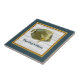 This vintage image of Chaetodon reticulatus, commonly called the Mailed Butterflyfish or Reticulated or Black Butterfly Fish, is a cheery addition to your kitchen nor living area. Customize the text to add your name or message. Make sure to personalize the text where indicated. It's bordered in a complementary gold, orange, and deep teal blue. A similar tile with a triggerfish with similar colours is also available.