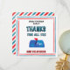 Cheerful and Colourful Mail Box with block letters Thanks for all the mail and deliveries. Watercolor red and blue diagonal lines in the background. Customize and personalize card if you know their name.