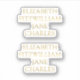 Show your bookish side and love for Jane Austen books with this bookish sticker featuring the first names of the major characters from Pride and Prejudice by Jane Austen: Elizabeth, Fitzwilliam, Jane, Charles in faux gold foil.