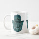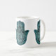 Main de motif de turquoise de Fatima (main de Hamsa) sur la tasse blanche. Symbole de la protection. Articles assortis disponibles.
