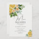 Lemon hues and party cues: a tale of love written in a lemonade stand or lemon trees grove with burnt orange roses and greenery accents. This invitation with a "She found her main squeeze" theme captures the essence of this sweet narrative, inviting you to celebrate the bride's discovery of love and a bright and happy bridal shower theme. Explore a citrus themed bridal shower that radiates warmth and zest. A trendy and modern watercolor illustration of lemons and lemon branches, with burnt orange roses and greenery accents, provides the floral frame for this elegant and chic citrus themed bridal shower brunch invitation. Elegant calligraphy rounds up this unique design that is perfect for a spring or summer bridal shower, for a garden party, a festive indoors celebration or a low-key house party. Also perfect for a fall bridal shower tea party for the autumn months when burnt orange and terracotta hues are everywhere.