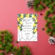 Boho-chic yellow lemons with varying shades of greenery adorning a gemstone geometric frame in gold foil with gold foil "Main Squeeze" script text. Elegant and classy for your bridal shower occasion. Back features an Italian tile look blue and white background. Composite design by Holiday Hearts Designs.